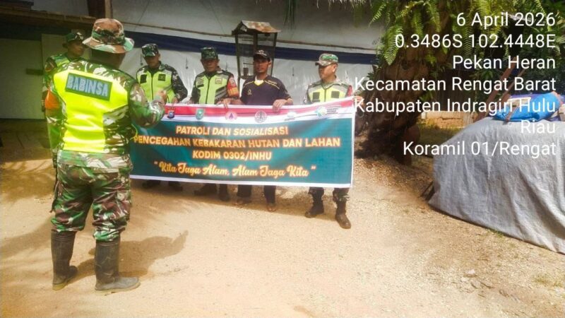 SUARANEWS86.COM || Dalam rangka mencegah terjadinya kebakaran hutan dan lahan (karhutla), Babinsa Koramil 01/Rengat Barat, Peltu Herman Waluyo, secara rutin melaksanakan patroli serta kegiatan sosialisasi kepada masyarakat di wilayah binaannya.