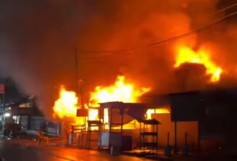 Informasi awal yang dihimpun, api pertama kali terlihat dari salah satu kios yang mengeluarkan asap tebal sebelum akhirnya membesar dan menjalar ke bangunan di sekitarnya.