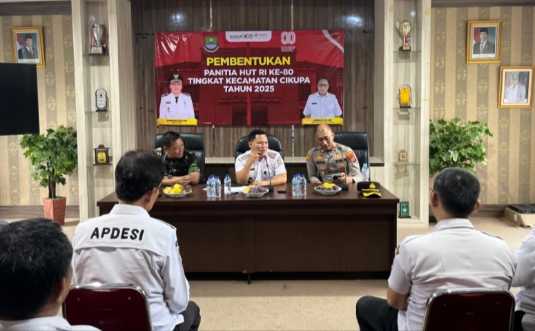 SUARANEWS86.COM || Tangerang – Dalam rangka menyambut Hari Ulang Tahun Kemerdekaan Republik Indonesia ke-80, Pemerintah Kecamatan Cikupa menggelar rapat persiapan yang berlangsung pada Rabu, 30 Juli 2025, pukul 14.30 WIB hingga 16.00 WIB, bertempat di Kantor Kecamatan Cikupa, Desa Budimulya, Kecamatan Cikupa, Kabupaten Tangerang.