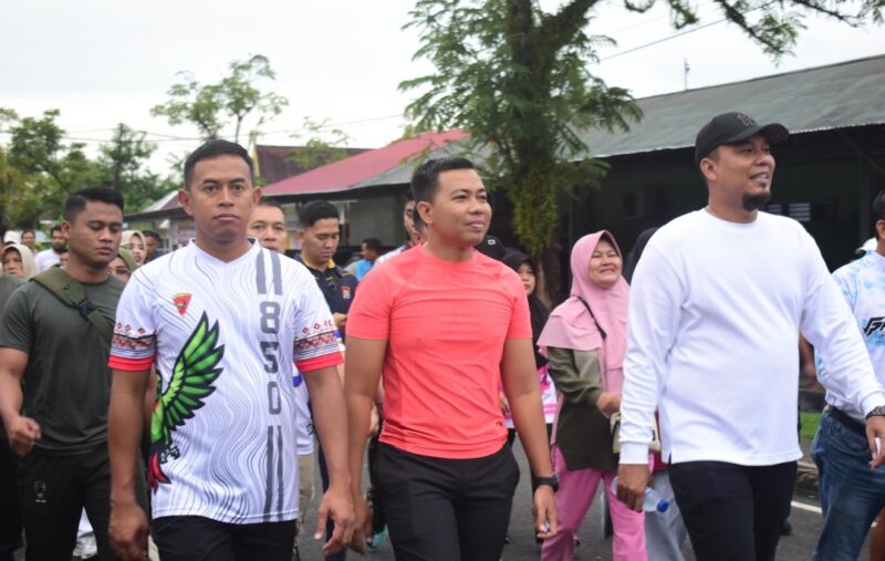 Kegiatan jalan santai ini yang diikuti dari berbagai elemen masyarakat, mulai dari pelajar, ASN, hingga anggota TNI/Polri, ini berlangsung meriah dengan rute mengelilingi pusat kota.