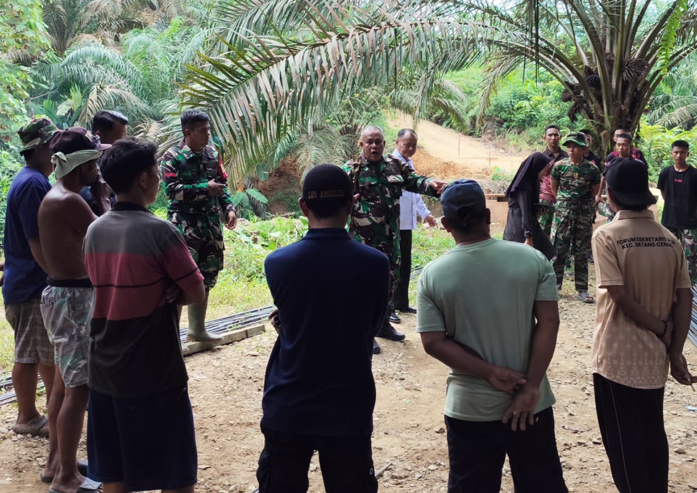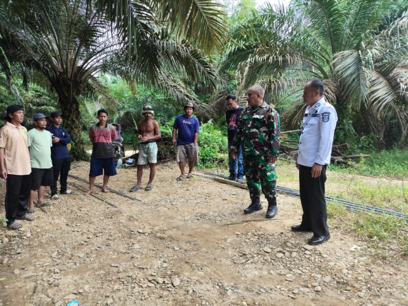 SUARANEWS86.COM || Danramil 03/Sebrang Batang (SBD) Kapten Inf. H.B. Sitepu bersama Camat Batang Cenaku, Badauwani, S.Sos, melakukan kunjungan langsung ke lokasi pembangunan Jembatan Perintis Garuda di Desa Sanglap, Kecamatan Batang Cenaku, Kabupaten Indragiri Hulu, Kamis (14/4/2026).
