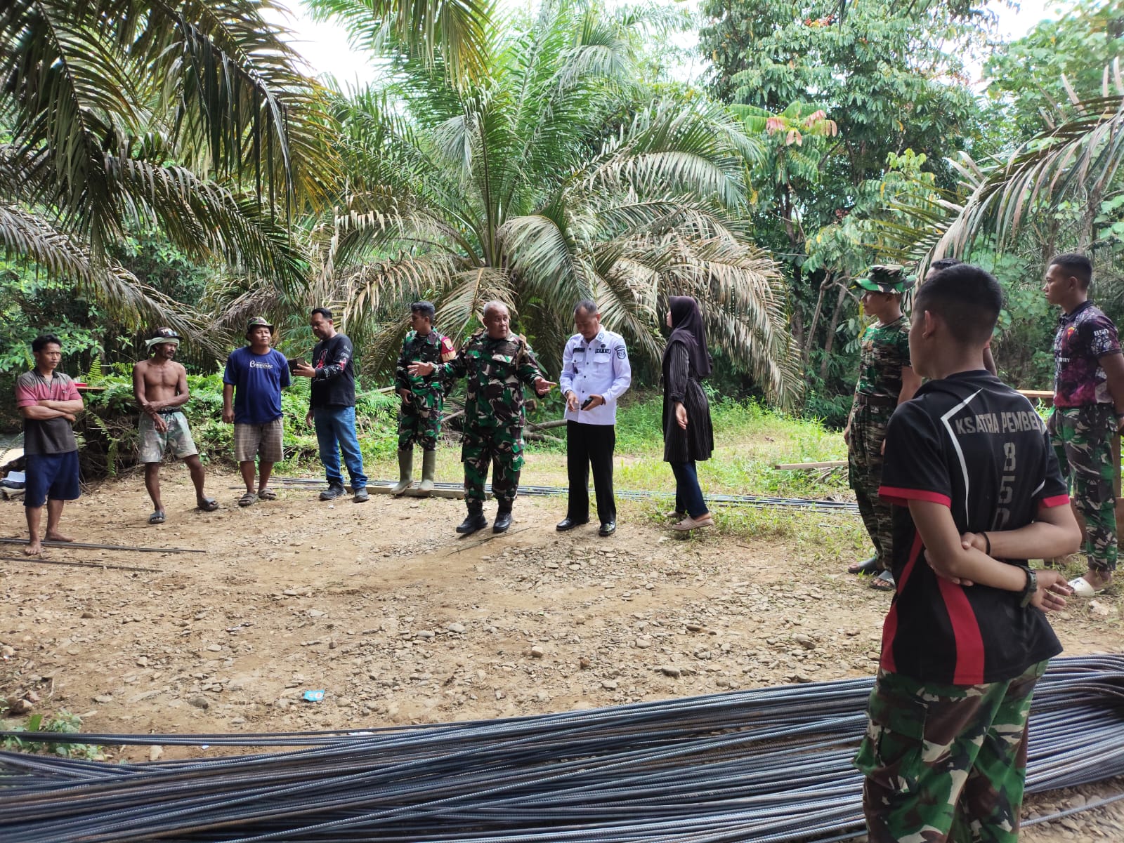 Selain melakukan peninjauan, Danramil bersama Camat juga melaksanakan komunikasi sosial (komsos) dengan aparat desa dan masyarakat di lokasi pembangunan.