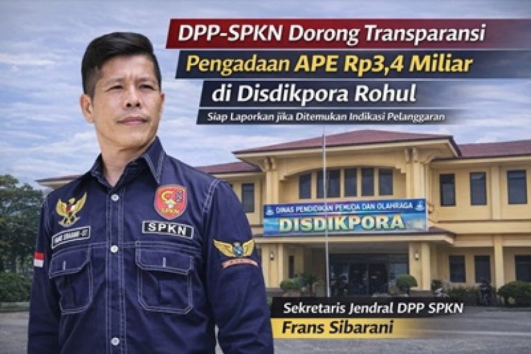 SUARANEWS86.COM || PEKANBARU — Dewan Pimpinan Pusat Serikat Pengawas Kebijakan Nasional (DPP-SPKN) menyoroti pentingnya transparansi dalam pelaksanaan pengadaan Alat Permainan Edukatif (APE) pada Dinas Pendidikan, Pemuda, dan Olahraga Kabupaten Rokan Hulu Tahun Anggaran 2025.