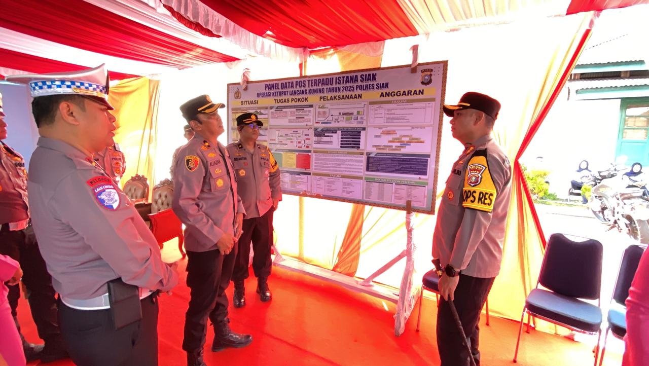 Kapolres Siak AKBP Eka Ariandy Putra menjelaskan, “Kegiatan ini bertujuan untuk meninjau langsung kesiapan personel serta sarana dan prasarana guna menjamin kelancaran dan keamanan bagi masyarakat, khususnya wisatawan yang berkunjung ke Istana Siak selama libur Lebaran.”