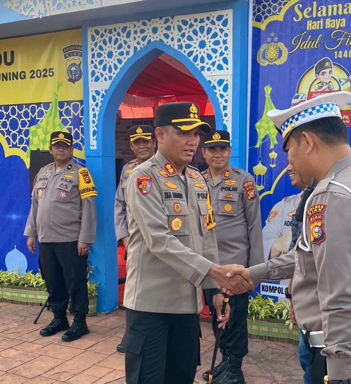 SUARANEWS86.COM | Siak – Dalam rangka memastikan kesiapan pengamanan perayaan Idul Fitri 1446 H, Kapolres Siak AKBP Eka Ariandy Putra, S.H., S.I.K., M.Si., beserta rombongan melakukan kunjungan dan pengecekan kesiapan Pos Terpadu Pengamanan Istana Siak dalam Operasi Ketupat Lancang Kuning 2025, pada Jumat (28/3) pukul 16.00 WIB.