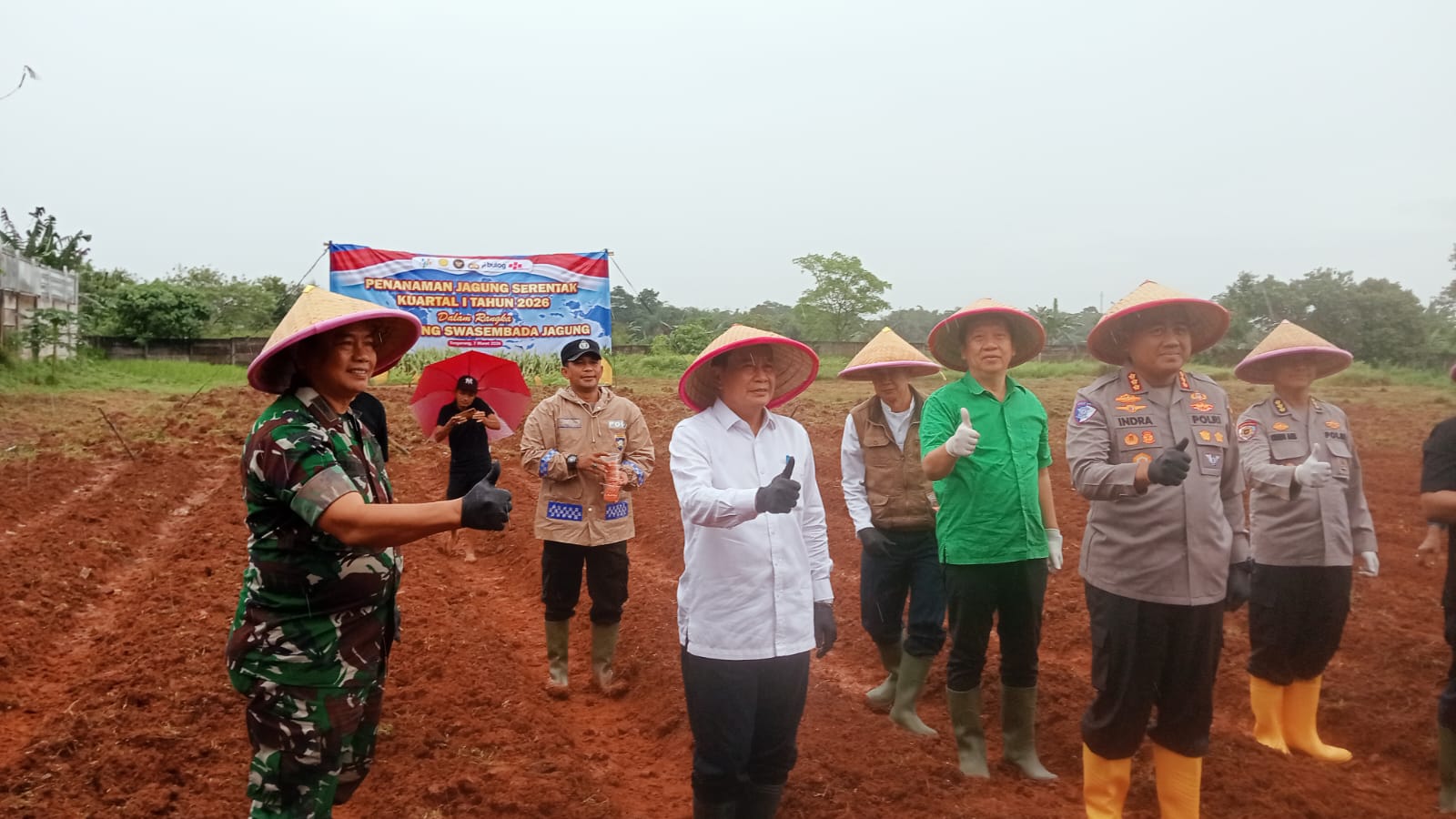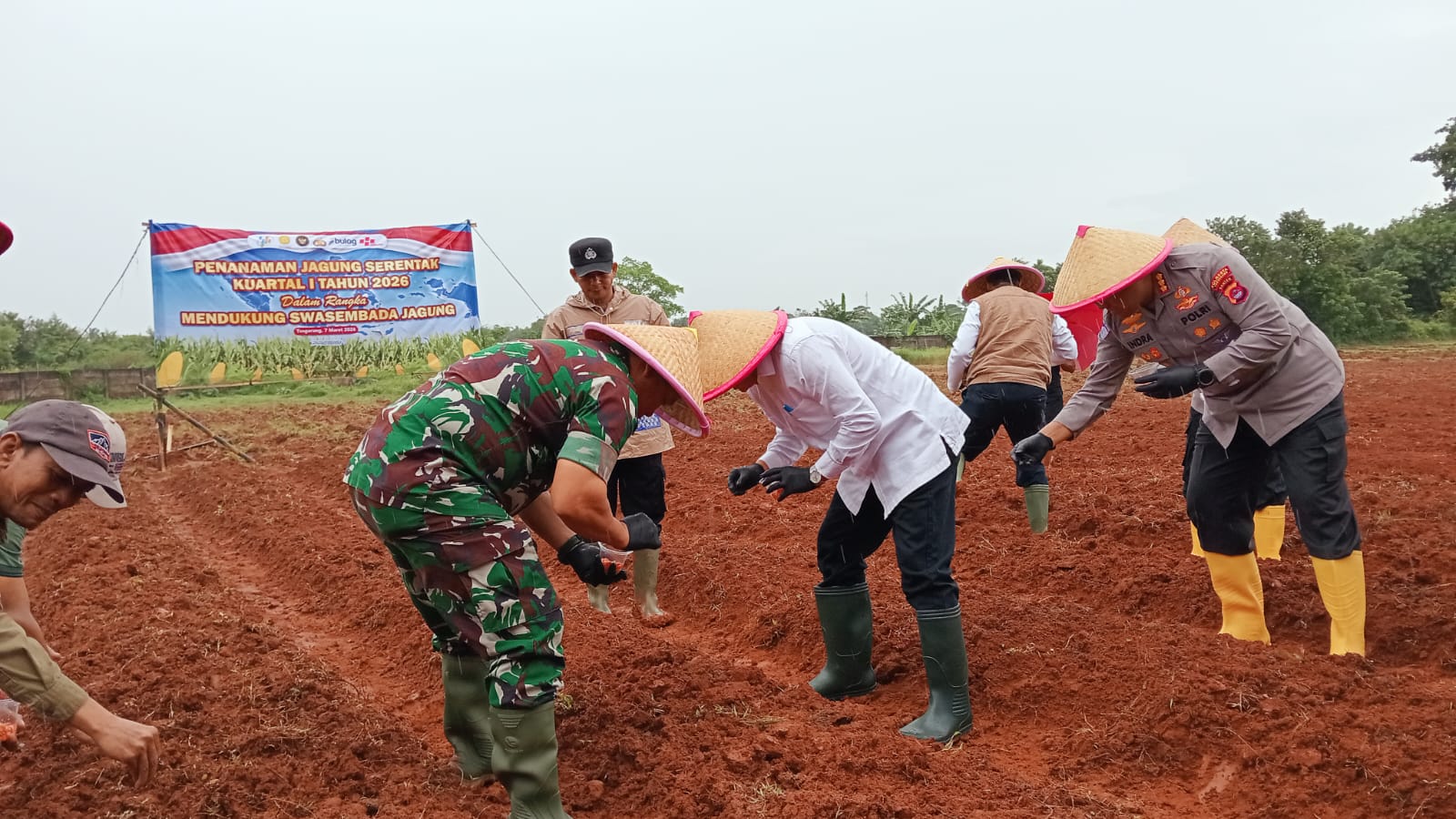 Penanaman jagung ini juga dihadiri sejumlah pejabat daerah dan unsur Forkopimda, di antaranya Bupati Tangerang Drs. H. Maesyal Rasyid, M.Si, Ketua DPRD Kabupaten Tangerang Muhamad Amud, S.Sos, Kapolresta Tangerang Kombes Pol. Andi M. Indra Waspada, S.H., S.I.K., M.M., M.Si, Wakapolresta Tangerang Kombes Pol. Christian Aer, S.I.K, serta Kasdim 0510/Tigaraksa Mayor Inf Tubagus Abdul Halim yang mewakili jajaran TNI.