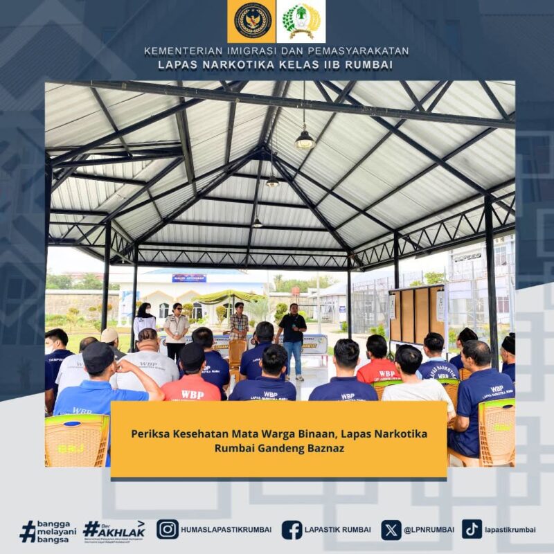 SUARANEWS86.COM || Pekanbaru — Lembaga Pemasyarakatan (Lapas) Narkotika Kelas IIB Rumbai tunjukkan kepeduliannya terhadap kesehatan Warga Binaan dengan menggelar bakti sosial pemeriksaan mata bekerja sama dengan Baznaz, Selasa (17/3/2026). Bertempat di Aula Terbuka Lapas Narkotika Rumbai.