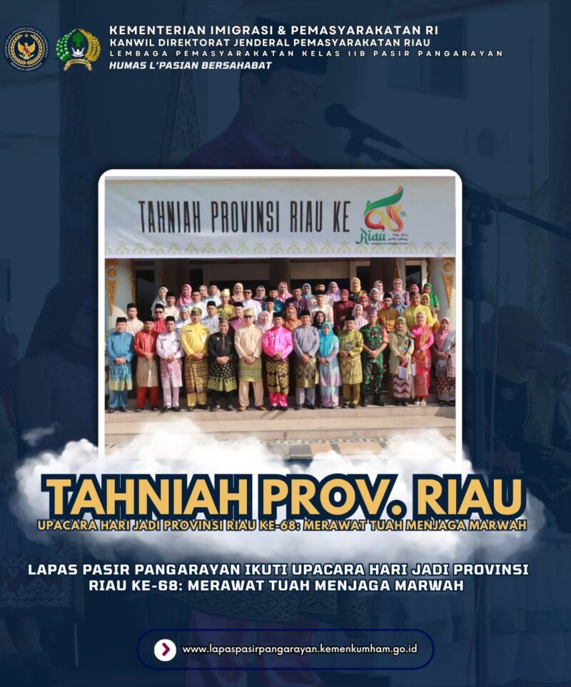 “Hari Jadi Provinsi Riau ini menjadi momentum untuk mempererat persatuan, menjaga nilai-nilai budaya, dan berkontribusi positif bagi kemajuan daerah, termasuk dalam bidang pembinaan di Lapas,” ujarnya.