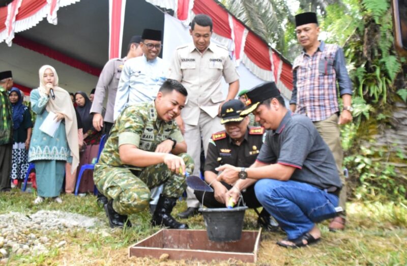 Tandai dimulainya pembangunan dilakukan dengan peletakan batu pertama oleh Komandan Kodim 0302/Inhu-Kuansing Letkol Arh Bangun Bara Kurniawan Prabowo, S.E., M.I.P. bersama Wakil Bupati Kab. Kuansing H. Muklisin.