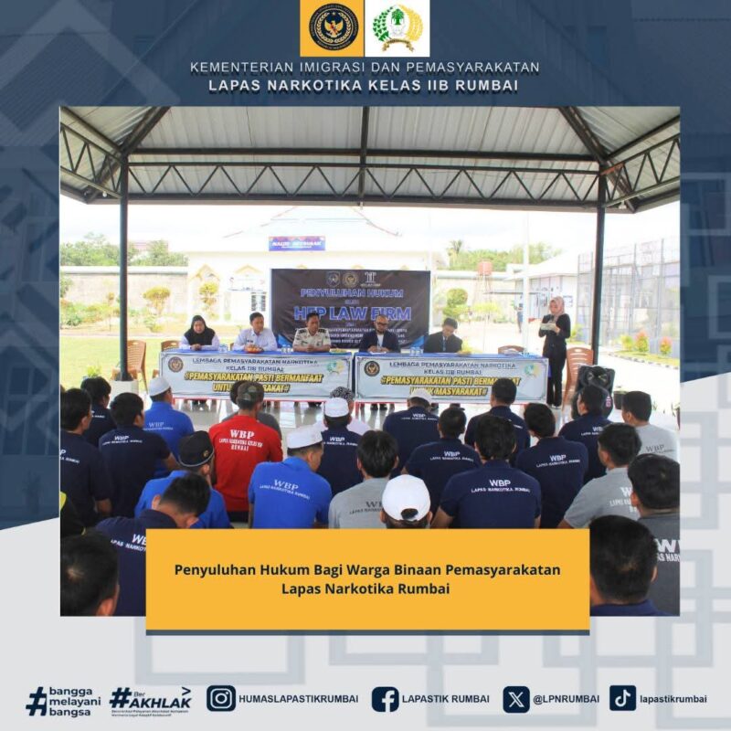 SUARANEWS86.COM || Pekanbaru — Sebagai bentuk wujud pelayanan yang mengutamakan penegakan Hak Asasi Manusia, Lembaga Pemasyarakatan Narkotika Kelas IIB Rumbai bekerja sama dengan HFP Law Firm berikan Penyuluhan Hukum kepada warga binaan Lapas Narkotika Kelas IIB Rumbai, Kamis (5/2/2026).