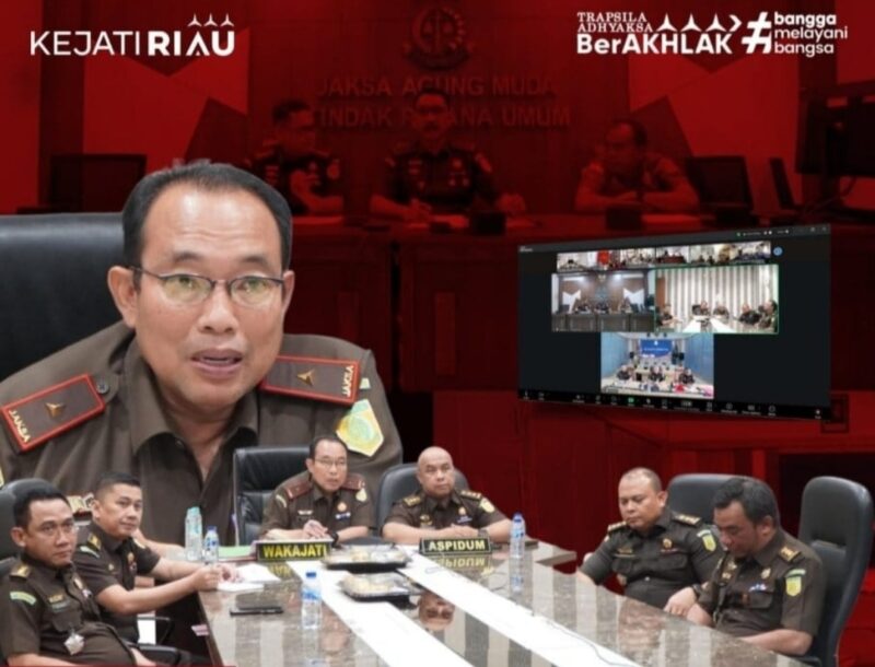 SUARANEWS86.COM || Pekanbaru — Plt. Kajati Riau Dedie Tri Hariyadi SH., MH., didampingi Aspidum beserta jajaran ajukan permohonan RJ terhadap perkara dari Kejari Siak kepada Jampidum melalui Dir C Yudi Indra Gunawan, SH.,MH., secara daring di rupat Waka. (22/09/2025).
