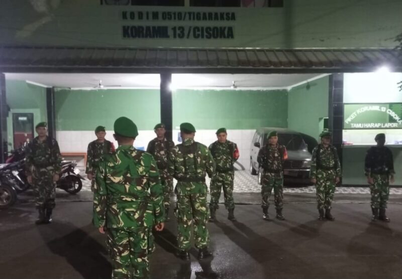 Personil Koramil 13/Cisoka Patroli Malam Intensifkan Keamanan Wilayah