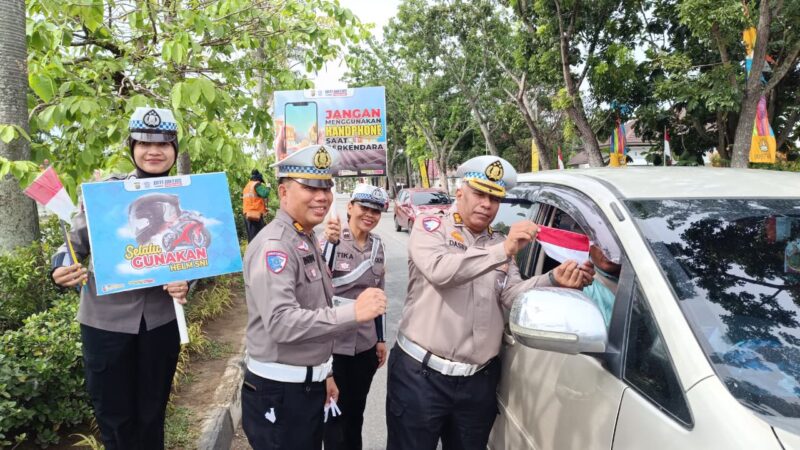 SUARANEWS86.COM || Suasana pagi di Jalan Diponegoro, Pekanbaru, terasa berbeda pada Kamis (14/8/2025). Di simpang lampu merah depan kediaman Kapolda Riau, para pengendara roda dua dan roda empat tersenyum ketika disapa oleh personel Subdit Kamsel Ditlantas Polda Riau. Tidak hanya sapaan ramah, mereka juga menerima bunga, bendera Merah Putih, serta brosur himbauan keselamatan berkendara.