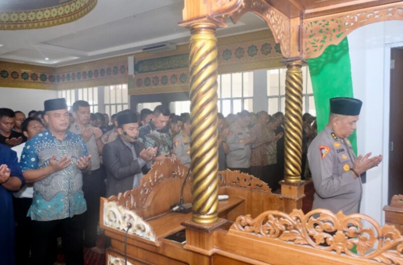 SUARANEWS86.COM || Polda Riau melaksanakan sholat gaib di Masjid Al-Zim Mapolda Riau, Jumat (29/8/2025). Kegiatan ini diikuti pejabat utama dan personel Polda Riau sebagai bentuk belasungkawa atas meninggalnya Affan Kurnia, seorang driver ojek online (ojol) di Jakarta.