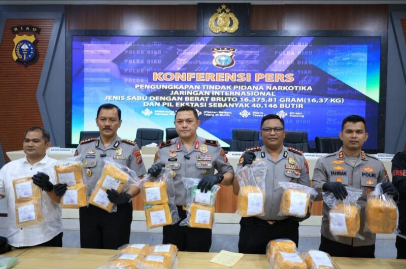 “Total nilai uang narkotika jenis sabu 14,95 kilogram jika diedarkan di masyarakat senilai Rp 14,95 miliar dengan asumsi 1 gram Rp 1 juta,” kata Wakapolda Riau Brigjen Hengki Haryadi di Mapolda Riau, Senin (30/3/2026).
