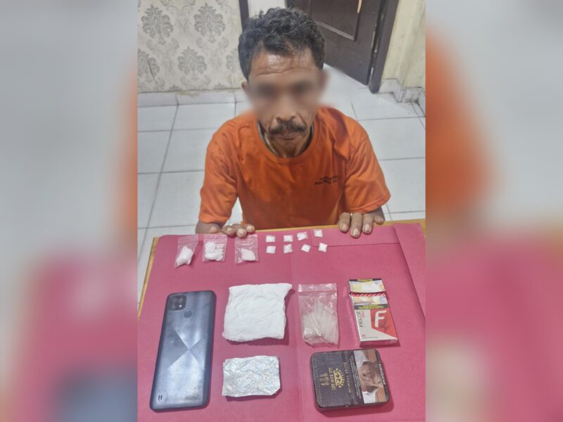 AKP Tony menambahkan,” Sekitar pukul 21.00 WIB, petugas berhasil mengamankan PS (49) di lokasi yang dimaksud. Saat dilakukan penggeledahan, ditemukan dua paket shabu yang disimpan dalam kotak rokok merek Feloz di saku celana sebelah kiri tersangka. Pencarian di sekitar lokasi penangkapan kemudian mengungkap enam paket shabu lainnya yang dibungkus tisu putih dan disembunyikan di semak-semak tempat tersangka berdiri.”