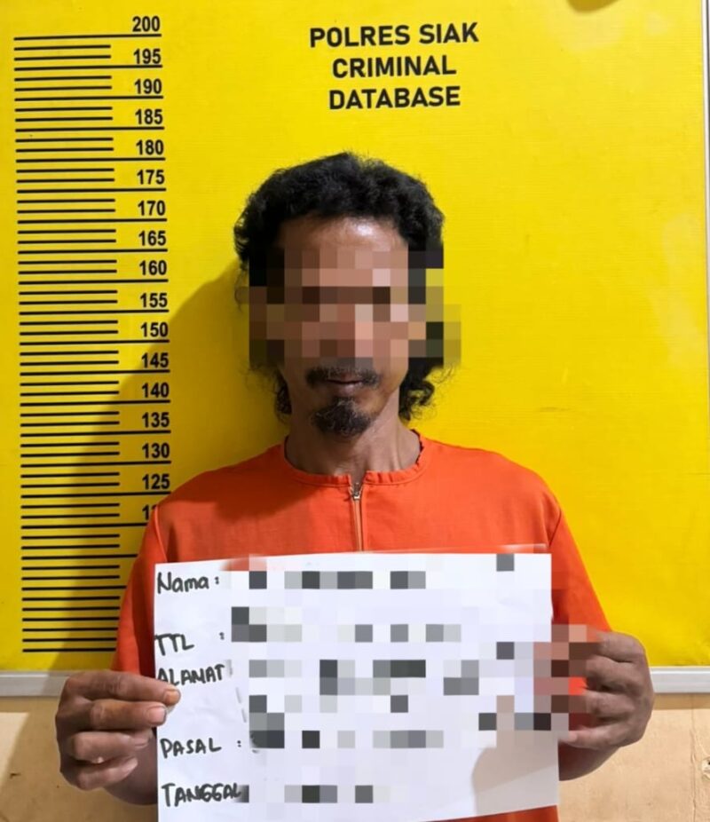 “Atas laporan tersebut, Tim Opsnal Satreskrim Polres Siak yang dipimpin oleh Kanit I Satreskrim IPDA Muhammad Habib Kevin Setiyawan, S.Tr.K langsung melakukan penyelidikan intensif. Pada Selasa, 13 Mei 2025, sekitar pukul 14.00 WIB, tim mendapatkan informasi keberadaan pelaku di kawasan Pasar Km 55, Sawit Permai,” Tambah AKP Bayu.