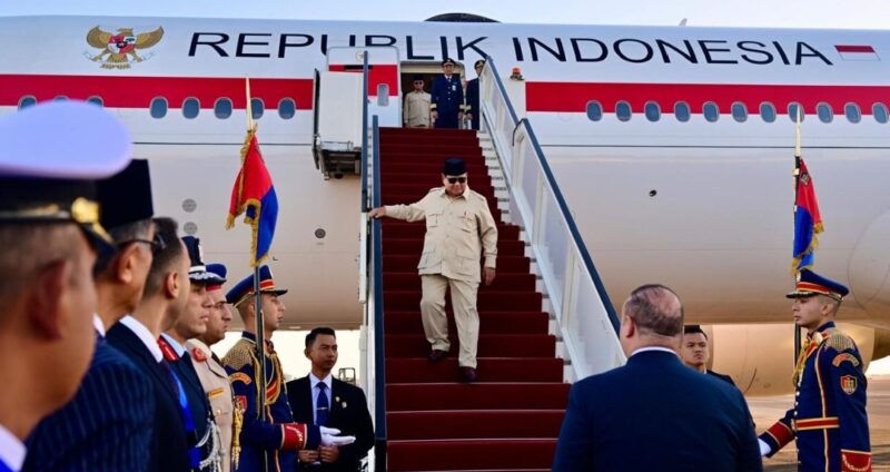 SUARANEWS86.COM || Presiden Republik Indonesia, Prabowo Subianto Tiba di Bandar Udara Internasional Sharm El-Sheikh, Republik Arab Mesir untuk menghadiri Konferensi Tingkat Tinggi (KTT) Perdamaian Sharm El-Sheikh pada Senin, 13 Oktober 2025.
