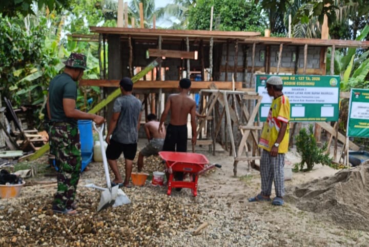 saat dihubungi oleh suaralira.com Sertu Hiswanto Tarihoran Satgas yang juga Babinsa Jum’at (13/02/2026) dilakosai TMMD Ke 127 disasasarn 3, dikatakanya memang pekerjaan RTLH milik Masrizal memang berkeinginan agar bisa cepat terselesaikan”katanya.