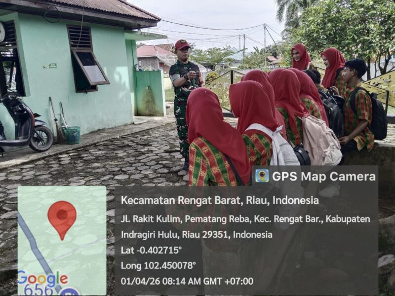 SUARANEWS86.COM || Babinsa Koramil 01/Rengat Kodim 0302/Inhu, Serka Dedi Iskandar, tetap menunjukkan semangat dalam melaksanakan kegiatan komunikasi sosial (komsos) bersama para pelajar.