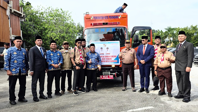 Prosesi keberangkatan dipimpin langsung oleh Walikota Pekanbaru, H Agung Nugroho didampingi Ketua Kwarcab Pramuka Pekanbaru, Hj Sulastri.