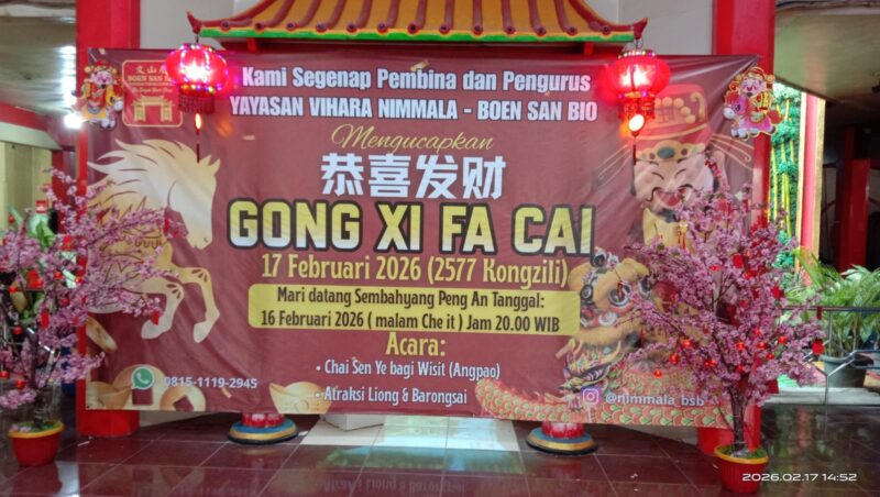 Melalui perayaan Imlek 2577 Kongzili ini, Yayasan Vihara Nimmala – Boen San Bio berharap semangat berbagi, persaudaraan, dan kedamaian dapat terus tumbuh di tengah kehidupan bermasyarakat. Tahun baru diharapkan menjadi momentum memperkuat persatuan serta menghadirkan harapan baru bagi semua. (Rizmayanti)