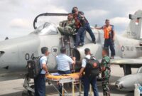 SUARANEWS86.COM || Personil TNI AU Pangkalan Udara Roesmin Nurjadin (Lanud Rsn) gelar simulasi latihan penanganan emergency landing (pendaratan darurat) pesawat tempur Hawk 100/200, Senin…