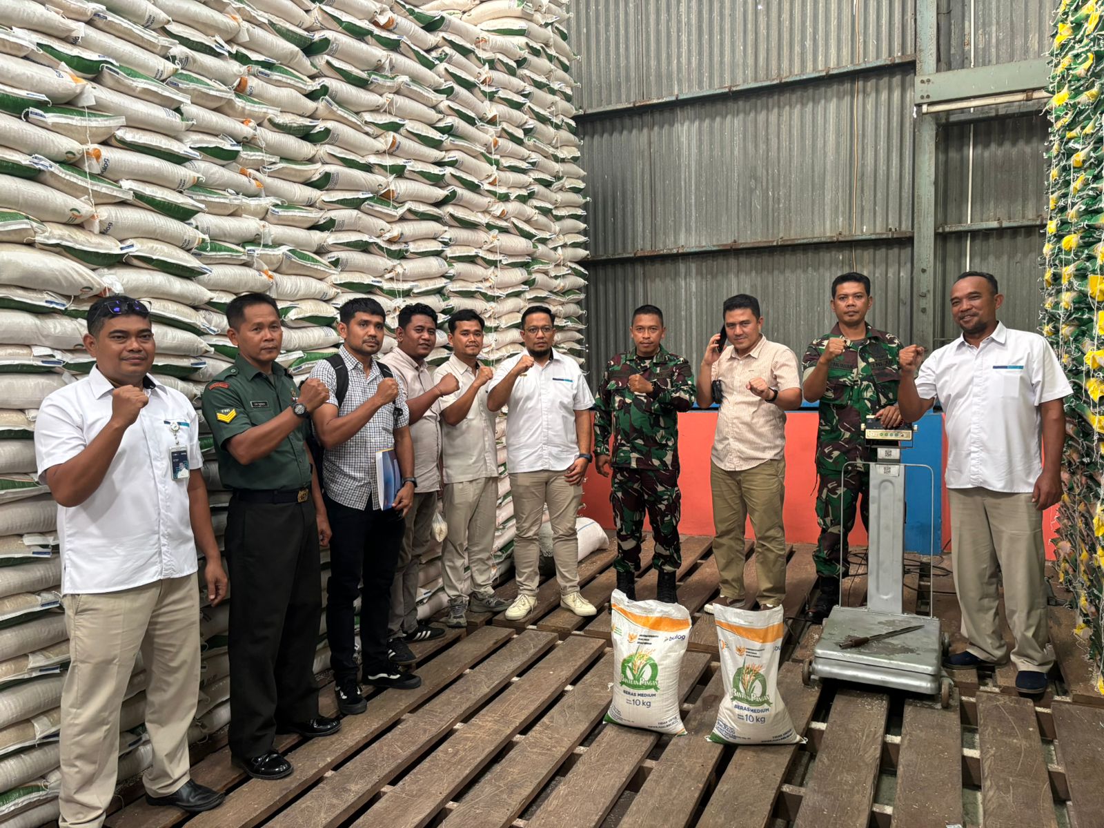 SUARANEWS86.COM || Komandan Kodim 0302/Inhu Letkol Inf Emick Chandra Nasution M.P.M, yang di wakili oleh Pasi Ter Kodim 0302/Inhu Lettu Inf Musdaliansyah melaksanakan peninjauan gudang Bulog.