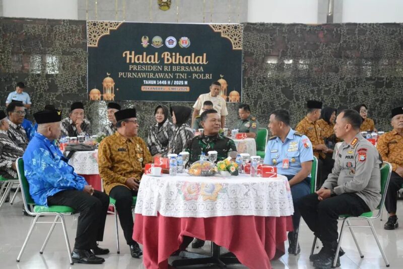 SUARANEWS86.COM || Danrem 031/Wira Bima Brigjen TNI Sugiyono bersama para purnawirawan TNI-Polri mengikuti kegiatan Video Conference (Vicon) Halal Bihalal bersama Presiden Republik Indonesia,bapak Prabowo Subianto, yang berlangsung pada hari Selasa, 6 Mei 2025 pukul 16.00 WIB bertempat di Aula Kaharudin Nasution, Korem 031/Wira Bima, Jl. Mayor Ali Rasyid, Kota Pekanbaru.