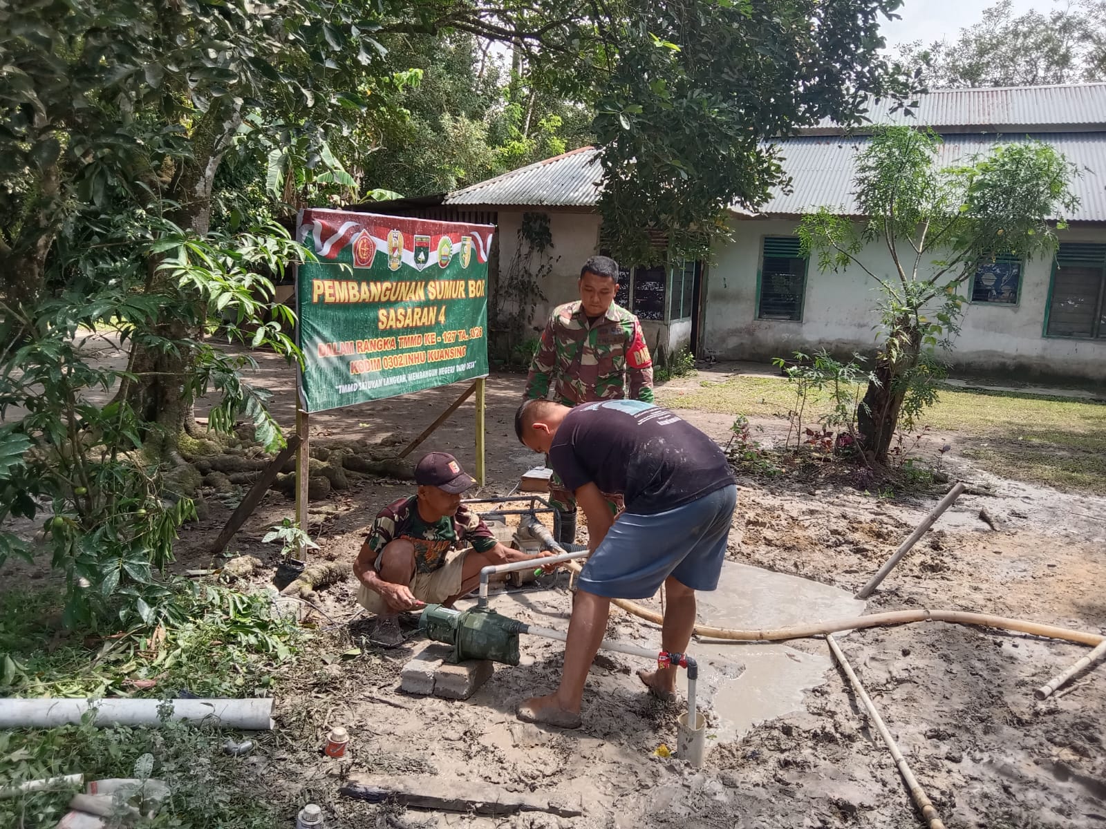 Guna untuk memenuhi kebutuhan air bersih bagi masyarakat Tentara Manunggal Membangun Desa (TMMD) TMMD ke-127 Kodim 0302/Inhu-Kuansing bangun sumur bor di Dusun 1 Desa Perhentian Luas Kecamatan Logas Tanah Darat Kabupaten Kuansing, Selasa (17/02/2026) oleh Satgas TMMD Pagi.