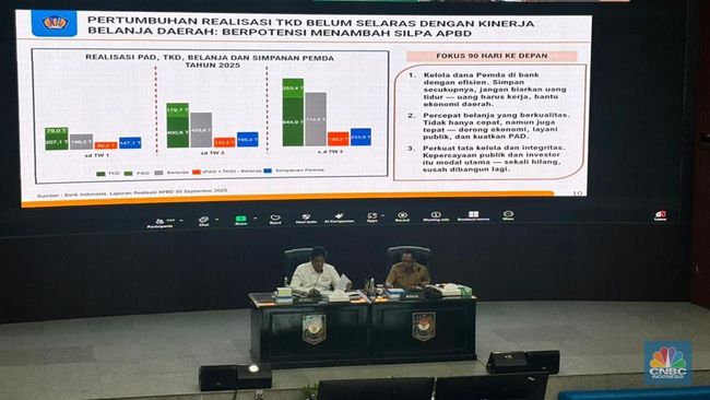 Per September 2025, Tito mengatakan, dari hasil pengecekannya langsung ke rekening kas daerah, nominal dana mengendap hanya senilai Rp 215 triliun, sedangkan berdasarkan catatan BI mencapai Rp 233 triliun lebih, yang berarti ada selisih sekitar Rp 18 triliun.