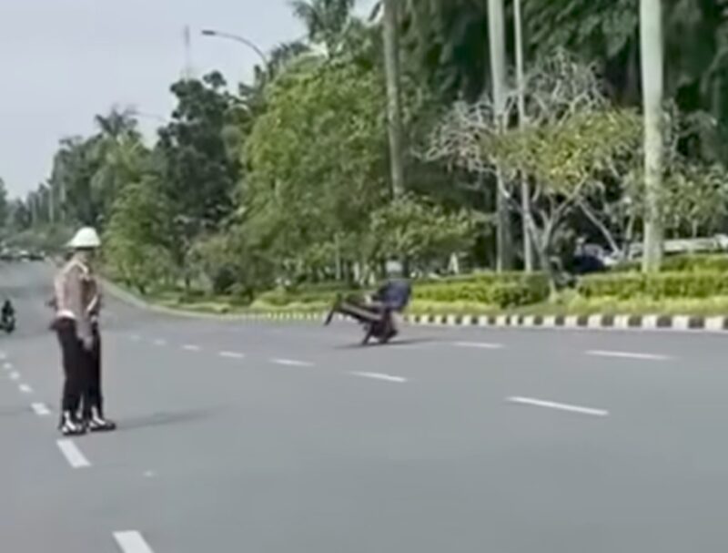 Dalam rekaman tersebut, pengendara Betor dengan santainya melakukan manuver ekstrem, membuat roda ketiga (roda bantu) Betor terangkat ke udara, menciptakan efek “jumping” yang mengejutkan.