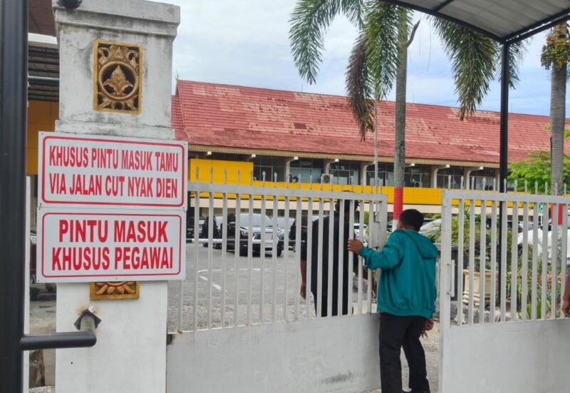 Awak media yang hendak meliput juga tidak diperbolehkan masuk dan diminta menunggu di luar area pagar.