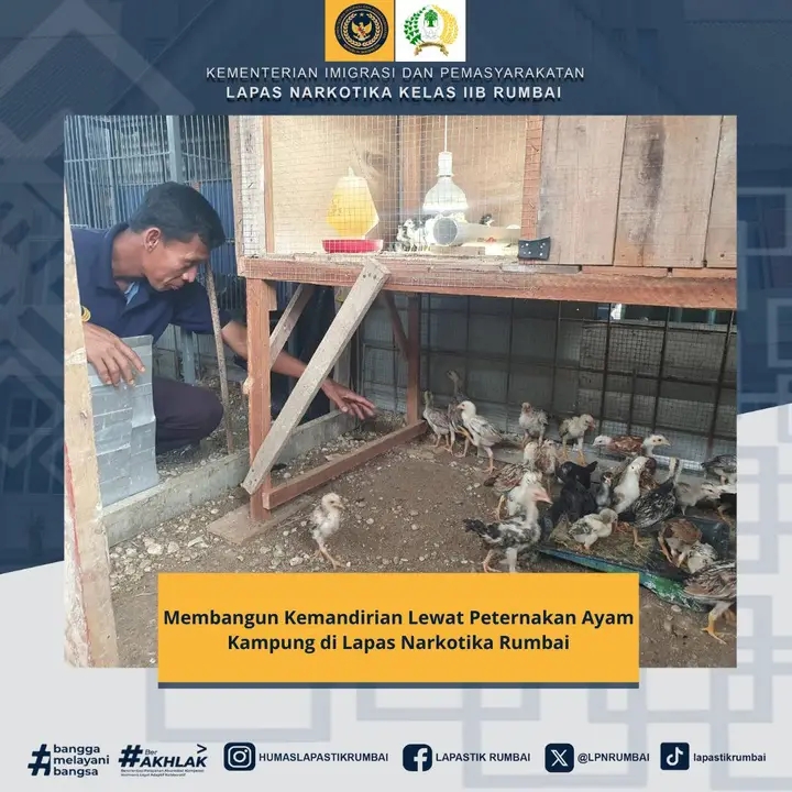 SUARANEWS86.COM || Pekanbaru — Upaya pembinaan kemandirian di Lembaga Pemasyarakatan (Lapas) Narkotika IIB Rumbai terus digencarkan sebagai bagian dari program pemberdayaan warga binaan. Salah satu kegiatan yang kini menjadi unggulan adalah pembinaan peternakan ayam kampung, yang tidak hanya memberi keterampilan baru, tetapi juga menumbuhkan rasa tanggung jawab dan kemandirian bagi para peserta.
