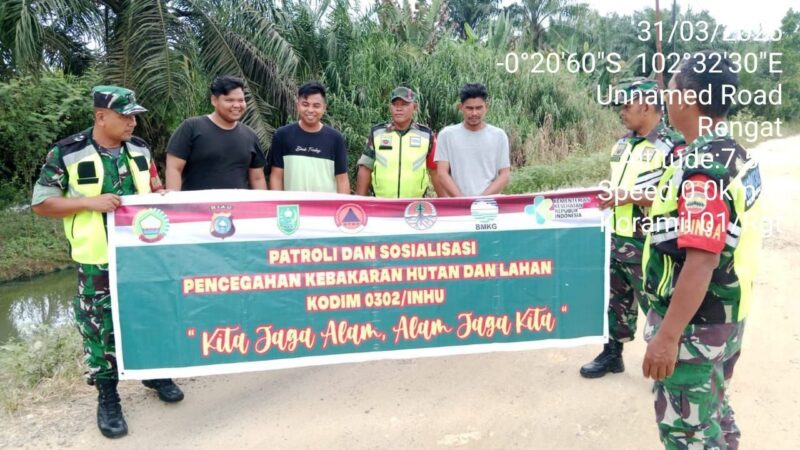 SUARANEWS86.COM || Babinsa Koramil 01/Rengat Kodim 0302/Indragiri Hulu melaksanakan patroli kebakaran hutan dan lahan (karhutla) di wilayah rawan Desa Rantau Mapesai, Kecamatan Rengat, Kabupaten Indragiri Hulu, Selasa (31/03/2026).