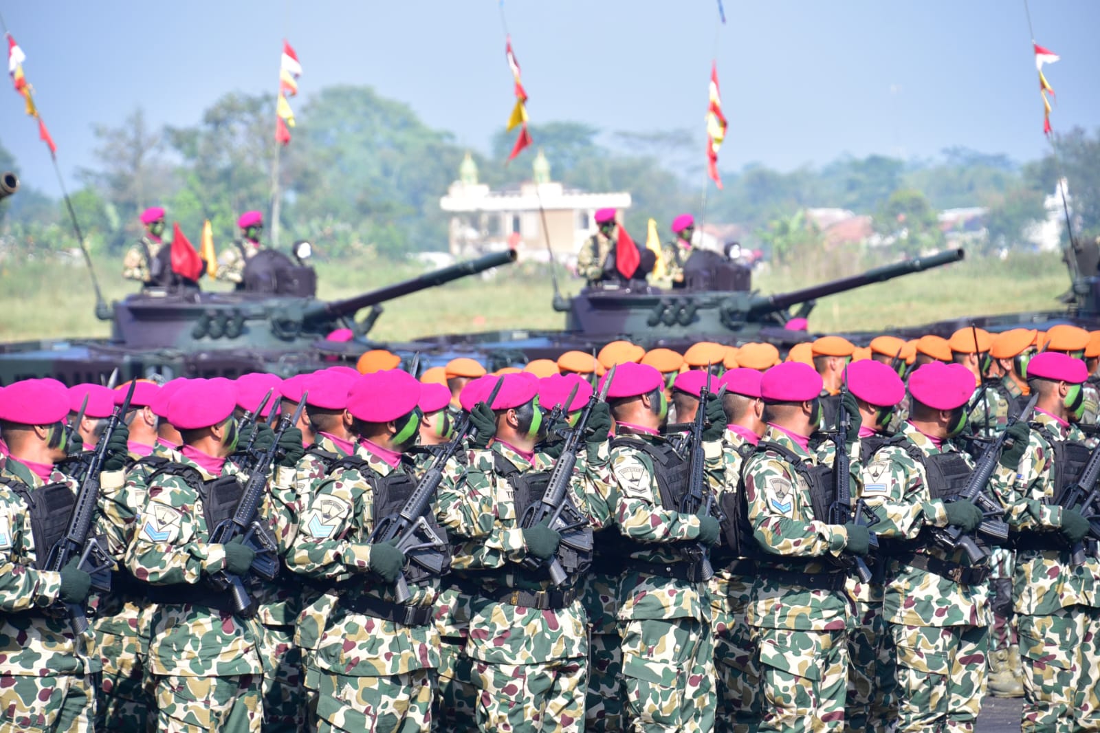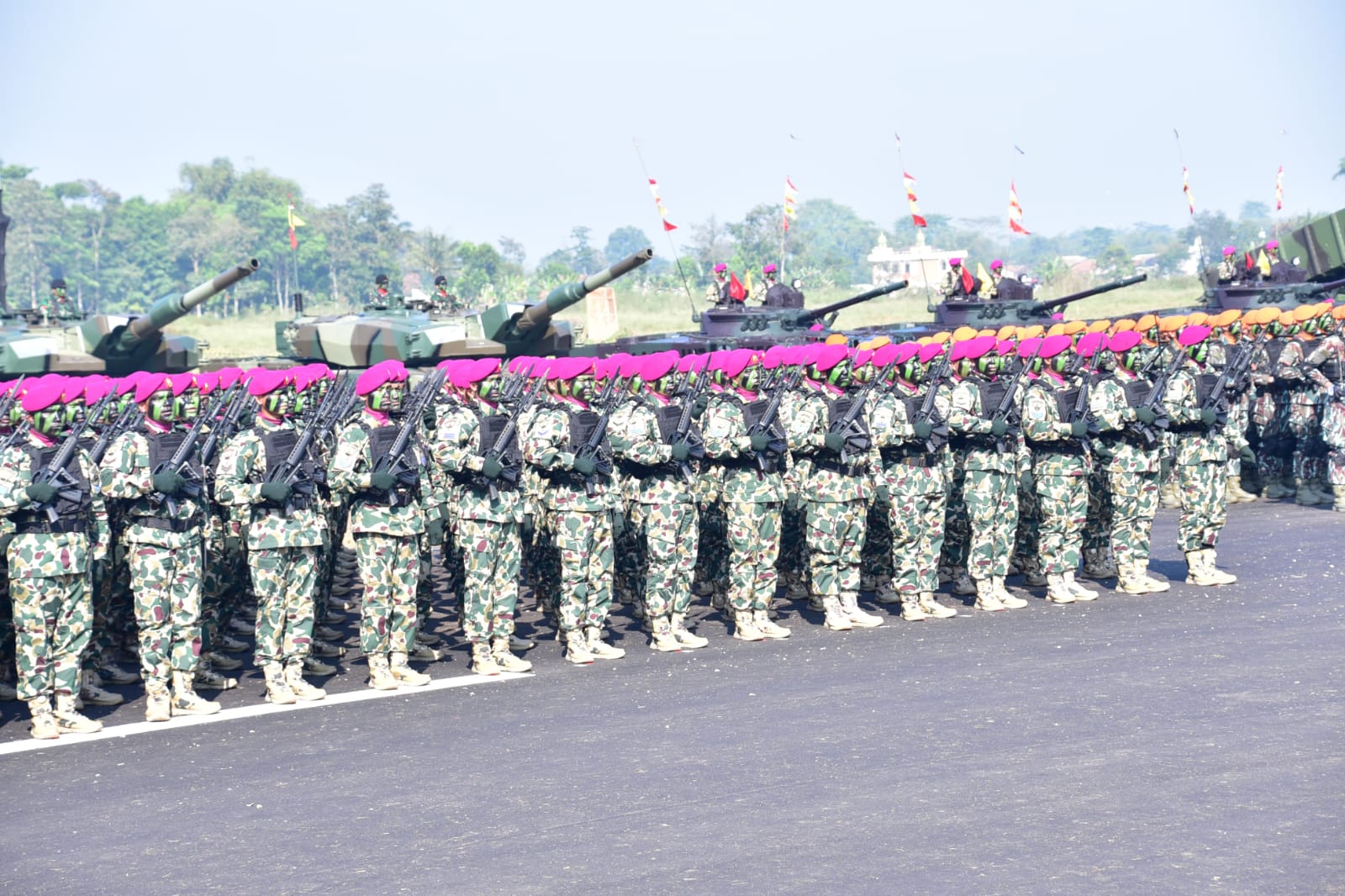 SUARANEWS86.COM || Prajurit Petarung Pasmar 1 menunjukkan penampilan gagah di hadapan Presiden Republik Indonesia H. Prabowo Subianto yang menjadi Inspektur Upacara (Irup) pada Upacara Gelar Pasukan Operasional dan Kehormatan Militer yang digelar di Lapangan Udara Suparlan Pusdiklatpassus Batujajar, Bandung Barat, Minggu (10/08/2025).