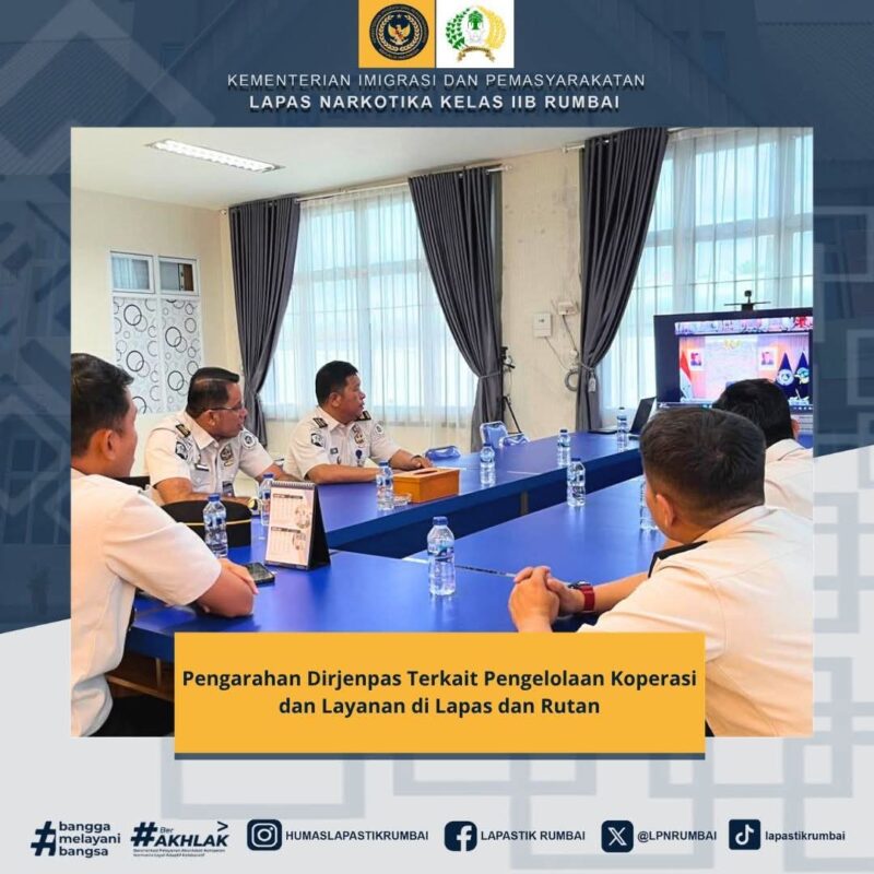 SUARANEWS86.COM || Pekanbaru — Lembaga Pemasyarakatan Narkotika Kelas IIB Rumbai mengikuti kegiatan pengarahan dari Direktur Jenderal Pemasyarakatan terkait pengelolaan Koperasi Pemasyarakatan Indonesia, Warung Telekomunikasi Khusus Pemasyarakatan (Wartelsuspas), serta penyediaan bahan makanan bagi warga binaan. Senin (6/4/26).
