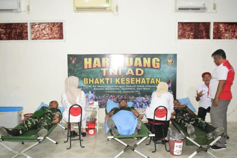 SUARANEWS86.COM || Komando Distrik Militer (Kodim) 0302/Inhu gelar kegiatan bhakti kesehatan donor darah dalam rangka memperingati Hari Juang TNI Angkatan Darat ke- 80 di Aula Makodim 0302/Inhu Kecamatan rengat Kabupaten Indragiri Hulu, Rabu (10/12/2025).