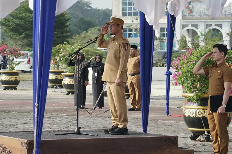 SUARANEWS86.COM || Pekanbaru – Walikota Pekanbaru Agung Nugroho menjadi Inspektur Upacara yang digelar di Lapangan Komplek Perkantoran Walikota Pekanbaru, Tenayan Raya, Senin (3/3/2025) pagi.