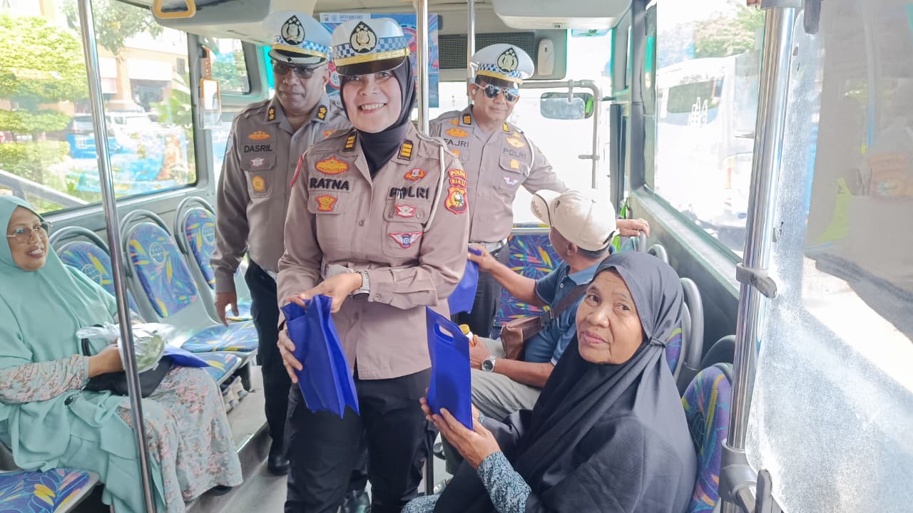 Polantas Menyapa dan Green Policing, Ditlantas Polda Riau Sapa Penumpang Busway di Sukaramai Trade Center