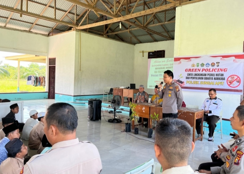 SUARANEWS86.COM || SIAK – Dalam upaya mencegah penyalahgunaan narkotika sekaligus menanamkan kepedulian terhadap lingkungan sejak dini, Polsek Sungai Apit melaksanakan kegiatan sosialisasi bahaya narkoba dan Police Go to School dalam rangka Green Policing, yang digelar di Pondok Pesantren Darul Qur’an, Kampung Lalang, Kecamatan Sungai Apit, pada Kamis, 7 Agustus 2025.