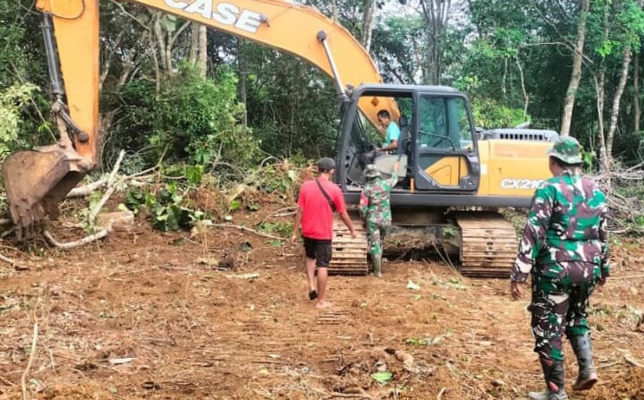 “Semangat gotong royong terlihat jelas di lapangan, di mana TNI dan masyarakat saling bahu membahu demi percepatan pembangunan.