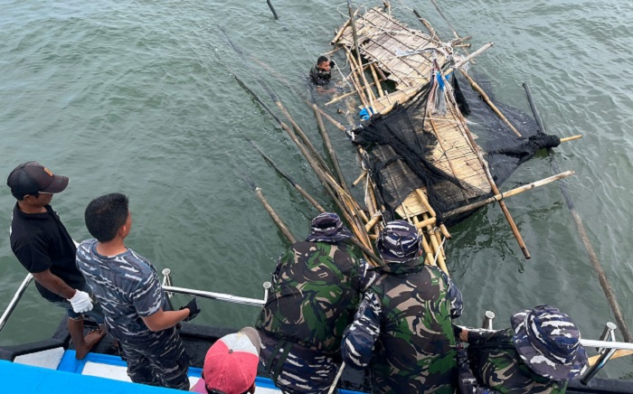 Selain kendala kondisi pagar yang tersusun berlapis, para prajurit TNI AL juga dihadapkan pada cuaca hujan dan arus laut yang cukup kuat.