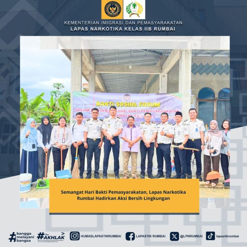 SUARANEWS86.COM || Pekanbaru — Dalam rangka memperingati Hari Bakti Pemasyarakatan ke-62 Tahun 2026, Lembaga Pemasyarakatan (Lapas) Narkotika Kelas IIB Rumbai melaksanakan kegiatan bersih-bersih fasilitas umum dan fasilitas sosial eksternal yang bertempat di Mesjid Sabilul Jannah, Selasa (7/4/2026).