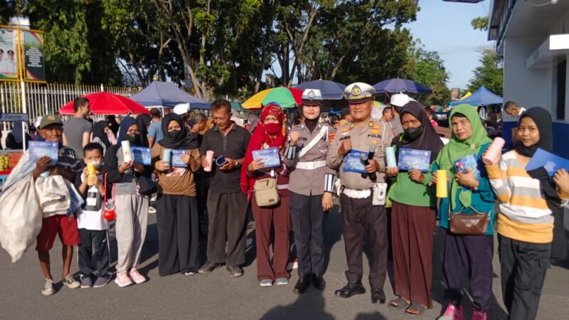 “Kami mensosialisasikan tata tertib berlalu lintas, membagikan brosur himbauan, tumbler, hingga puluhan helm SNI secara gratis kepada pengunjung CFD,” jelas AKBP Dasril.