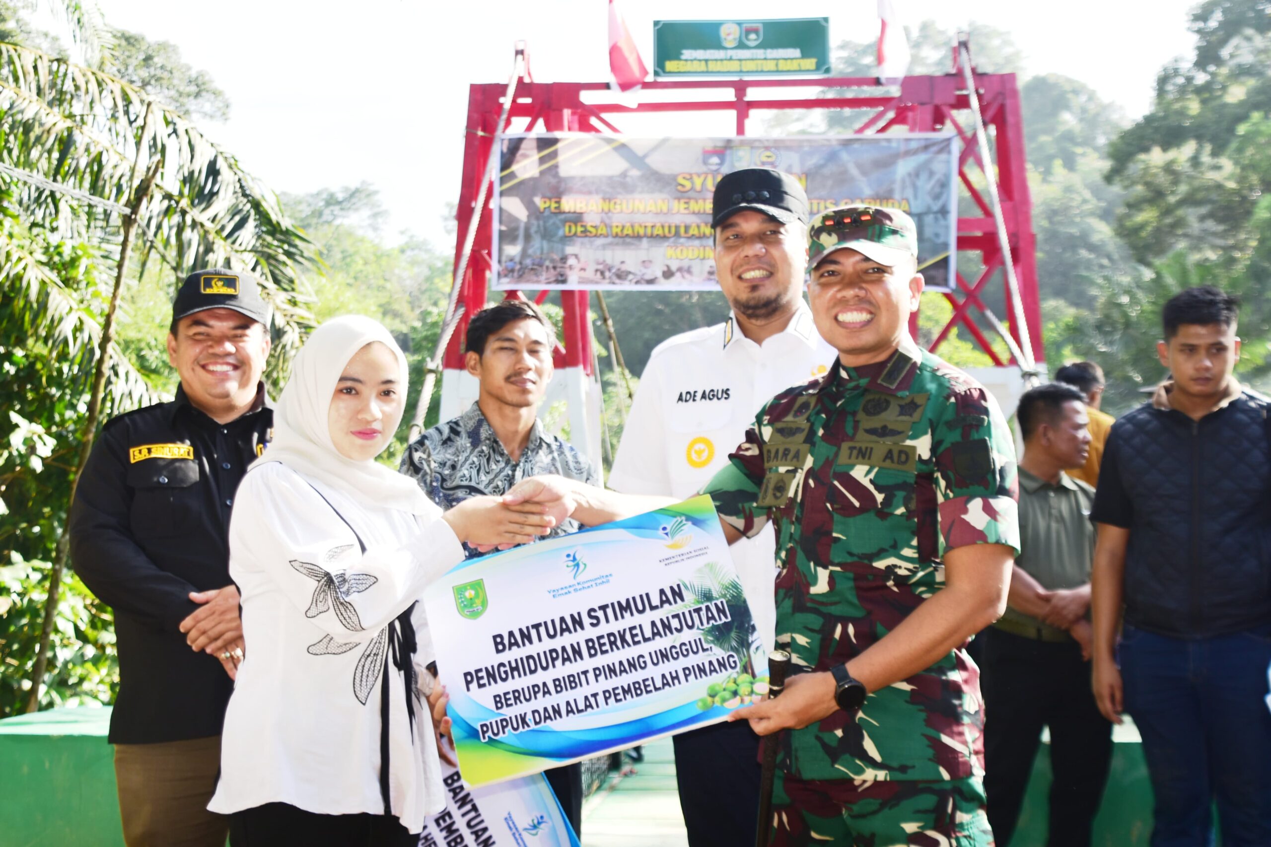 Dalam sambutannya, Dandim 0302/Inhu Letkol Arh Bangun Bara Kurniawan Prabowo menyampaikan bahwa pembangunan jembatan tersebut merupakan bagian dari program Presiden Prabowo Subianto, dengan Kepala Staf Angkatan Darat (Kasad) sebagai Dansatgas pembangunan Jembatan Perintis Garuda.
