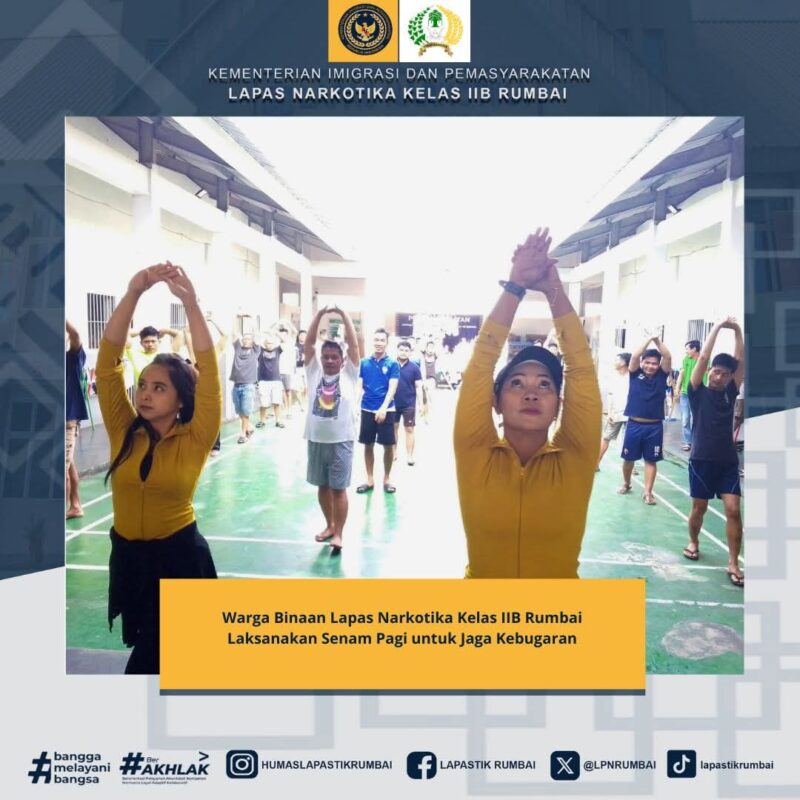 Kegiatan senam pagi merupakan bagian dari program pembinaan kepribadian yang dilaksanakan secara berkelanjutan, sejalan dengan komitmen Lapas Narkotika Kelas IIB Rumbai dalam memberikan pembinaan yang humanis dan berorientasi pada kesehatan warga binaan. (Rls)